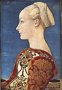 Belleza serena, romántica, frágil, casi táctil (pelo y brocado del vestido) en la obra de Antonio de Pollaiuolo (1).